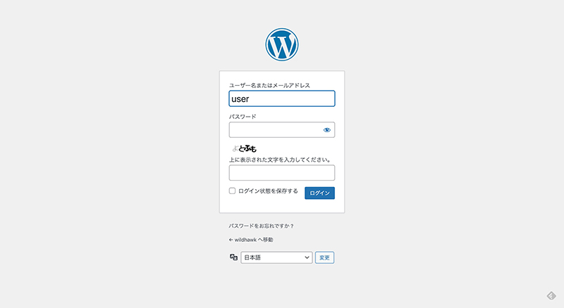 新しいURLでログイン画面が表示されれば、インストールは完了です。