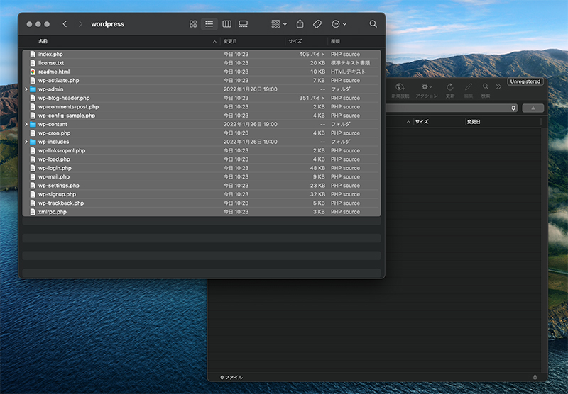 ダウンロードしたWordPressのZIPファイルを解答し、WebサーバーにFTPソフトを使ってアップロードします。