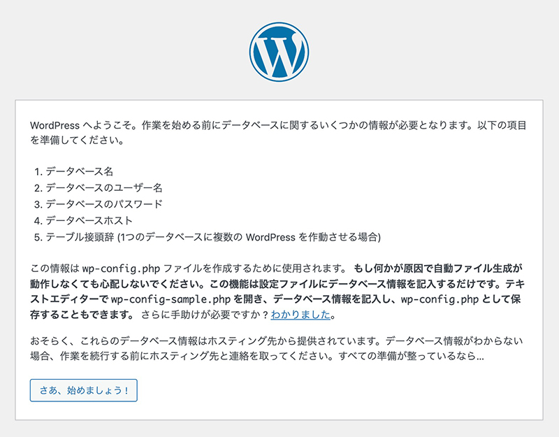 表示されない場合は、入力したデータベース情報に不備があるので、入力内容を確認してください。
