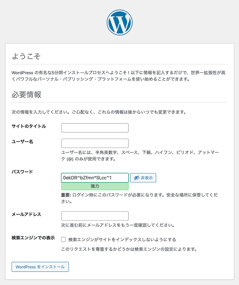 WordPressの情報を入力します。