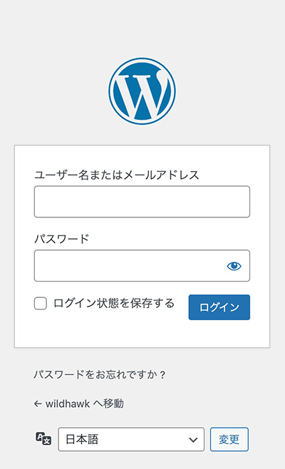 WordPressの管理画面を表示するには、ブラウザで以下のURLにアクセスします。