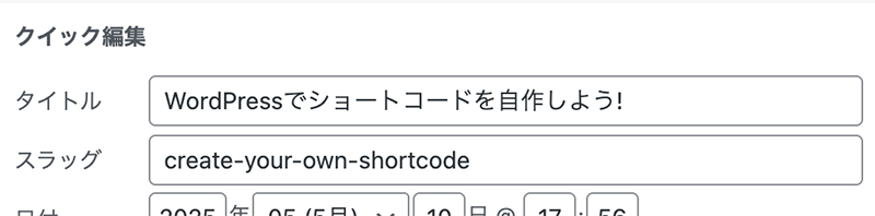 ※カテゴリ部分の「/wordpress/shortcodes/」はスラッグに入力しない